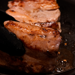 ④③を炊飯器から取り出す。サラダ油を熱したフライパンで豚肩ロースを全面こんがりと焼き、取り出しておく。