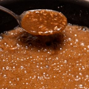 ⑤空いたフライパンに密閉袋に残った漬け汁・『リケンのノンオイル 青じそ』・おろししょうがを入れ、1/3量になるまで煮詰める。