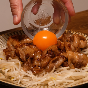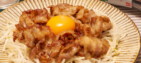豚バラ肉を『リケンのノンオイル 青じそ』とおろしにんにくで香ばしく炒めた一皿です!