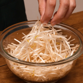 ①もやしは耐熱容器に入れラップをして、電子レンジで加熱(600W2分~)し、器に盛る。