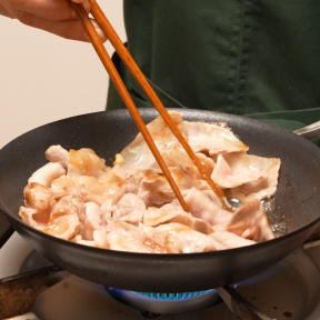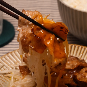 『リケンのノンオイル 青じそ』のコクと甘みが豚バラ肉の旨みを引き立てる、ごはんが止まらない満足感たっぷりの味付けにしました。