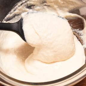 ②ボウルに充てん豆腐を入れ、ホイッパーでペースト状になるまでしっかりと混ぜる。