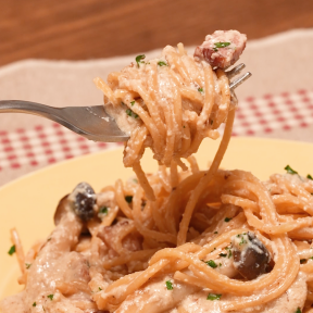 『リケンのノンオイル 青じそ』1本で味が決まるクリームパスタです!