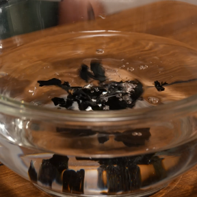 ③『ふえるわかめちゃん』は表示通りに水で戻し、水気をきる。
