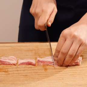 ③豚バラ肉・にらは2~3㎝幅に切る。